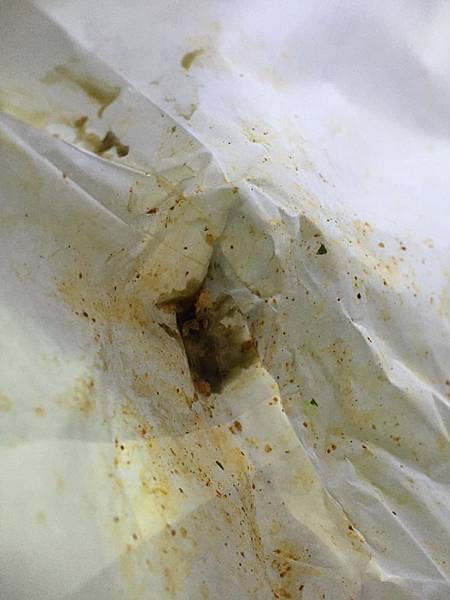 裡面稠稠的蛋黃流出來黏在紙袋上...