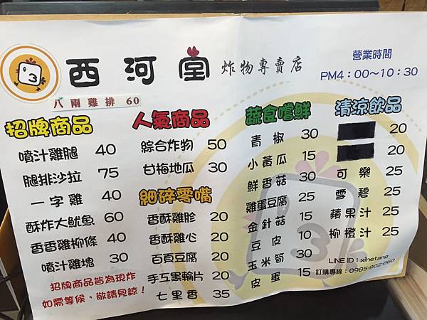 西河堂的菜單,跟鹹酥雞攤筆試有一些品項貴了一點點,