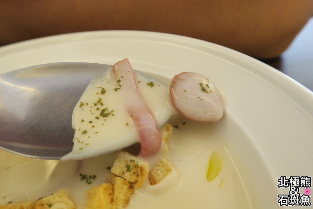 湯裡的肉料有兩種,好吃的火腿絲和德式肉腸(應該是)