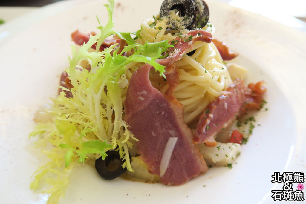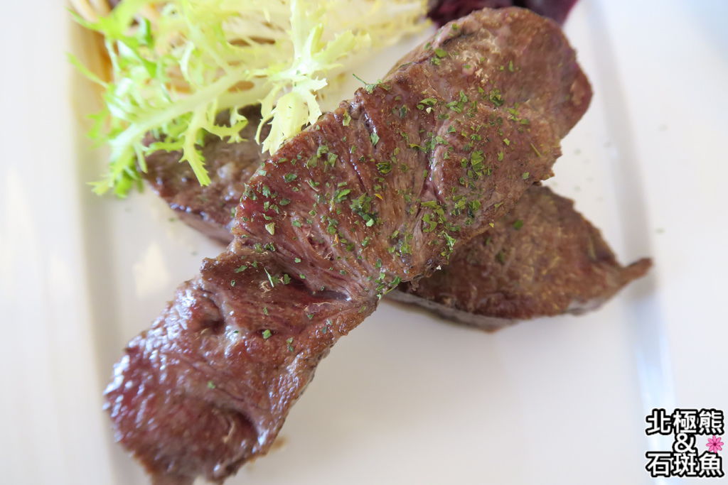 旁邊的水煮蔬菜有點太軟了,比較建議用生烤的方式呈現
