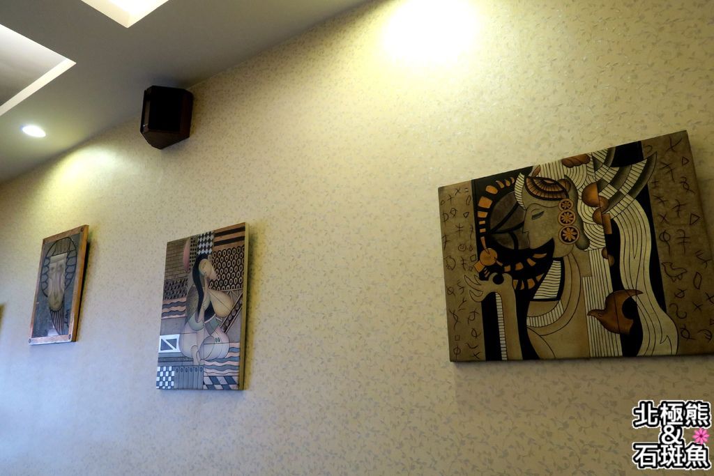 簡約的裝潢只有在牆上掛幾幅特別的畫作