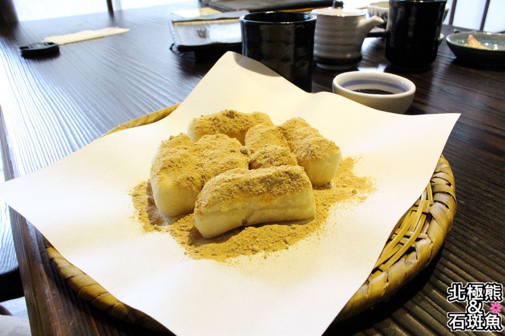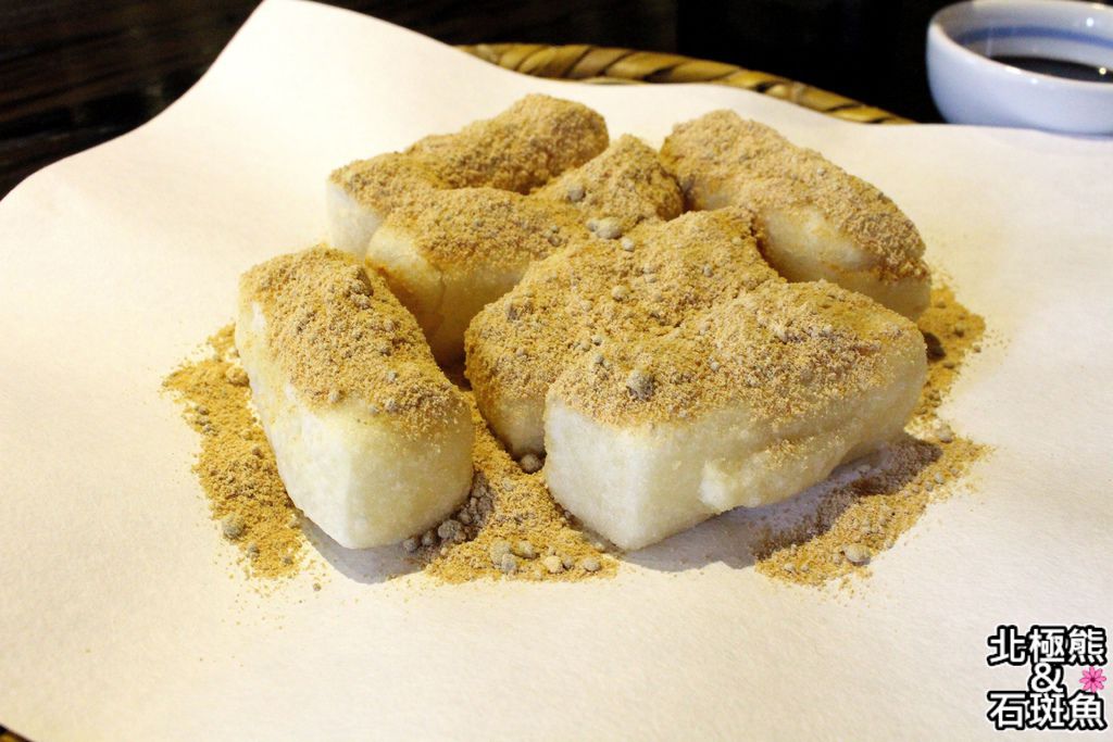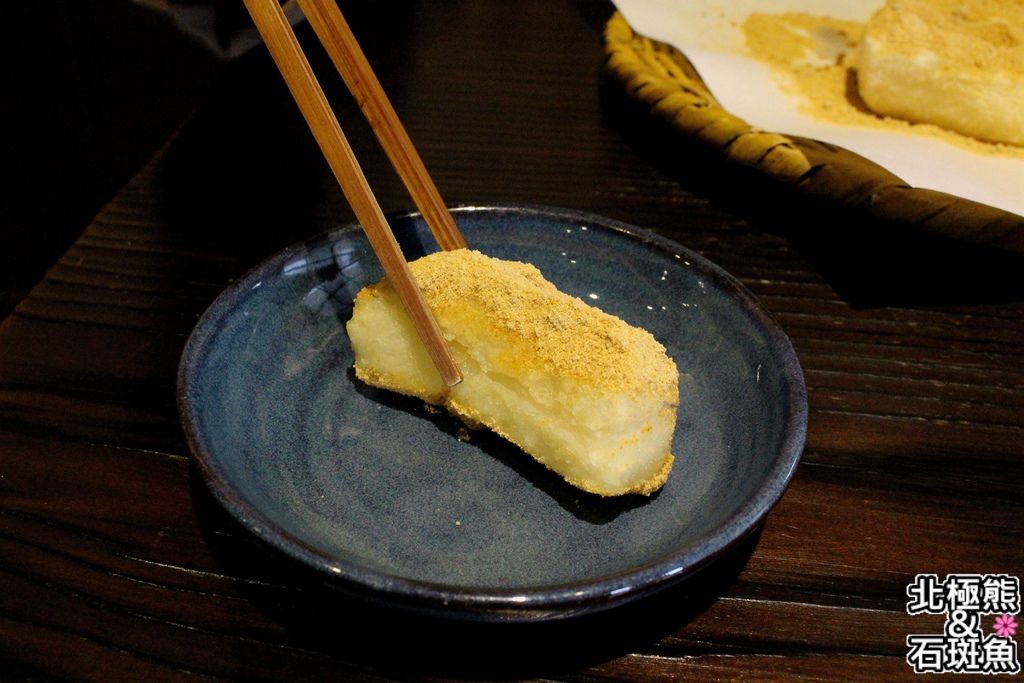 酥脆年糕上頭撒了滿滿黃豆粉提香