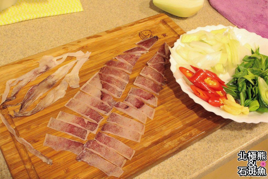 2.備料,將洋蔥、辣椒、蒜仔斜切段狀