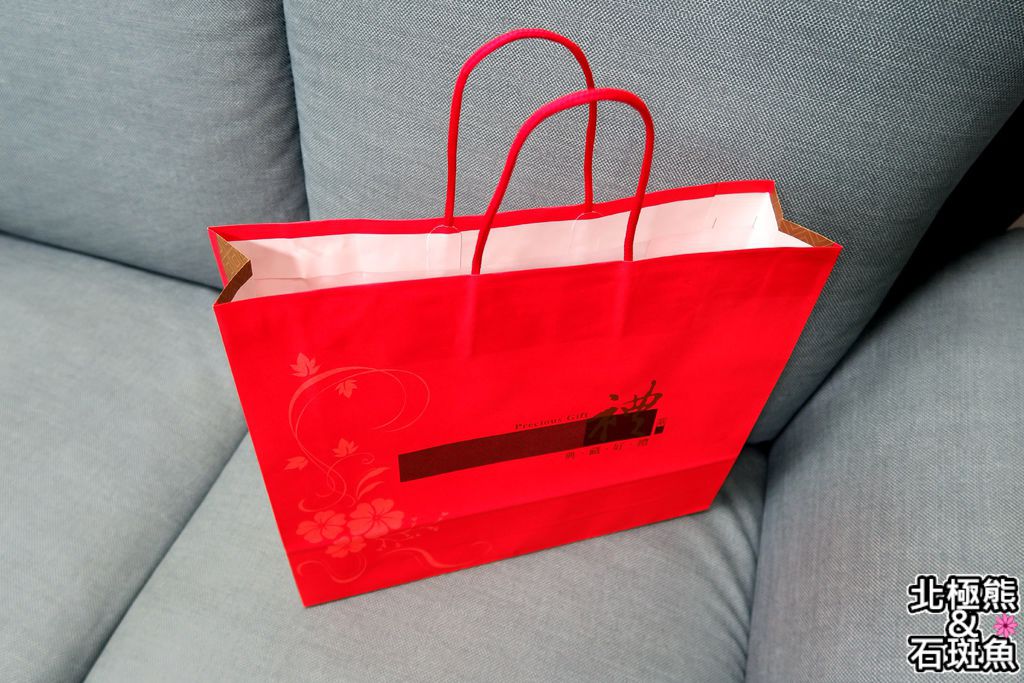 收到的中卷一夜干用喜氣洋洋的紅色紙袋裝著