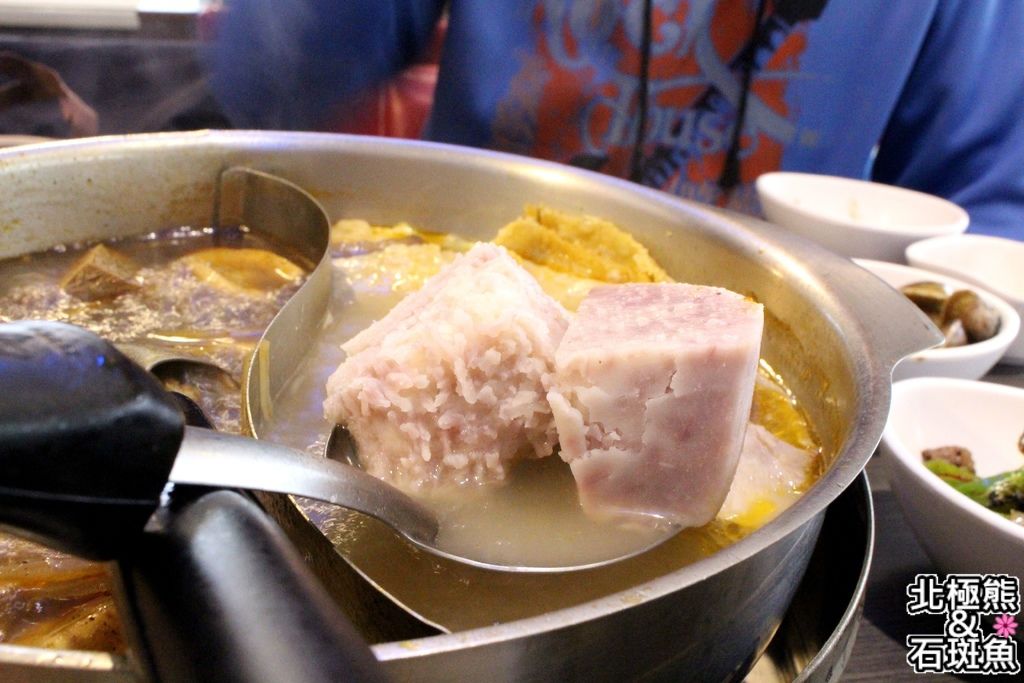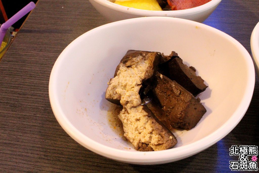 鴛鴦鍋上桌,裏頭有滷得非常透的豆腐