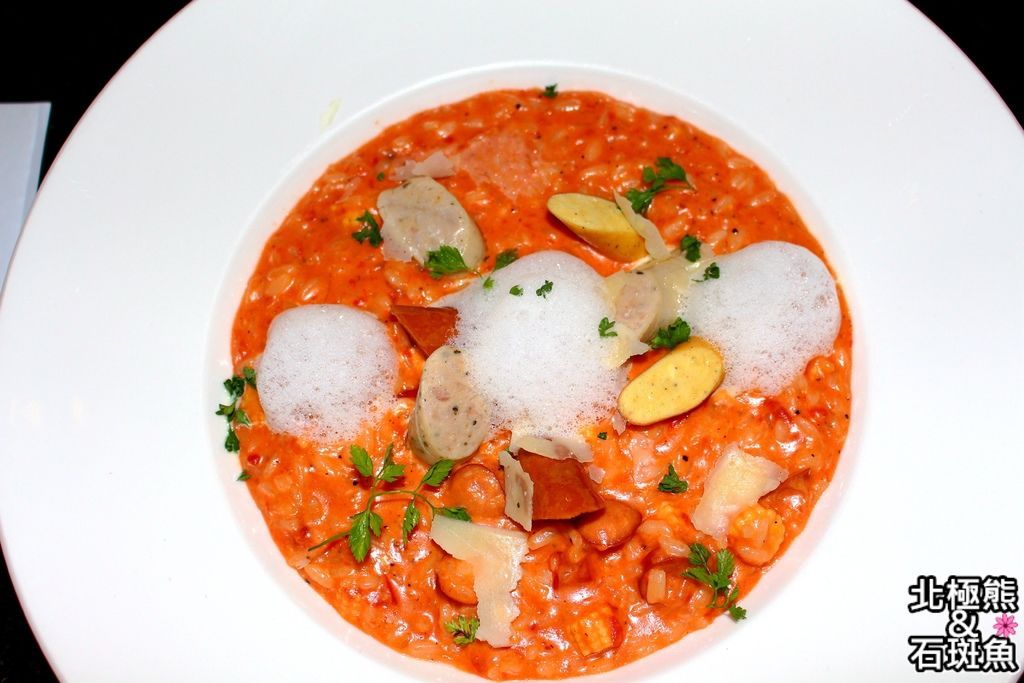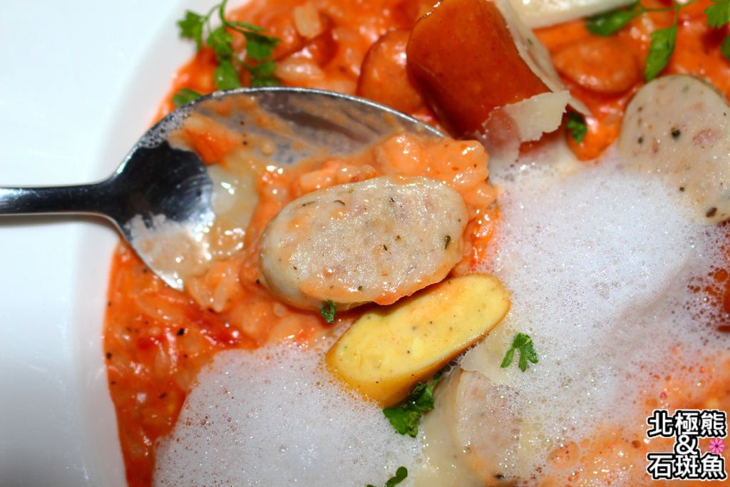 帕達諾起司三種肉腸鮮蔬微辣番茄醬汁奶油燉飯