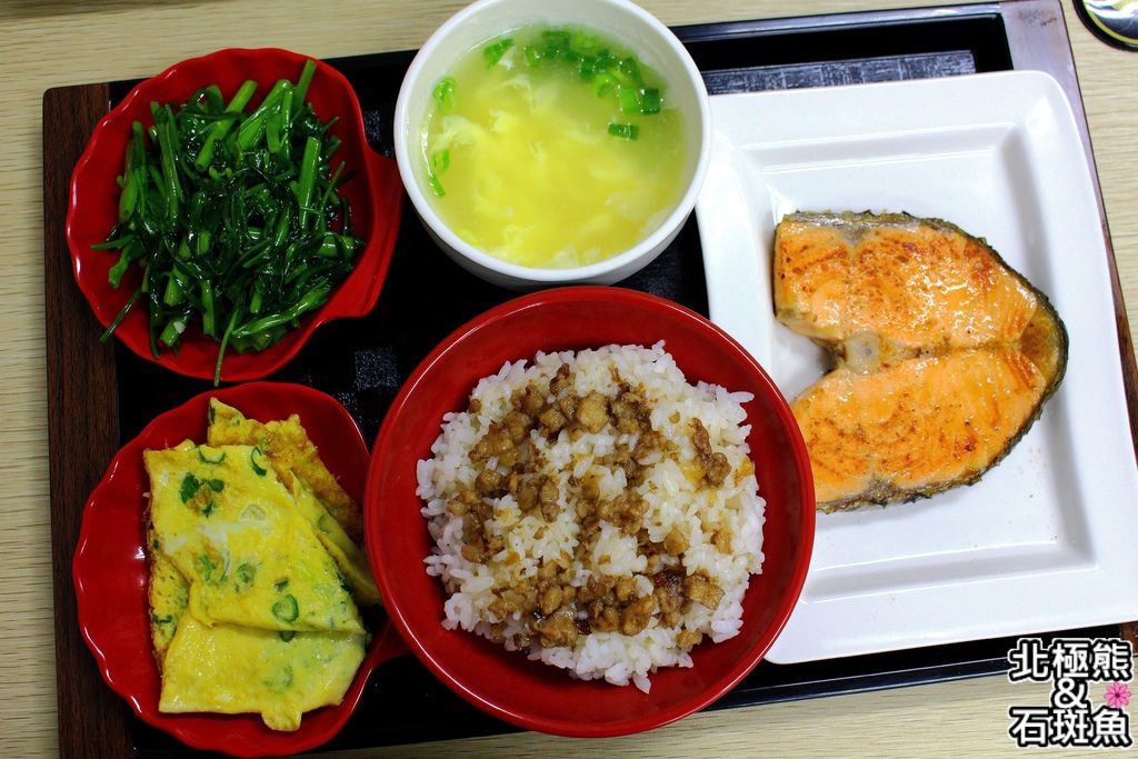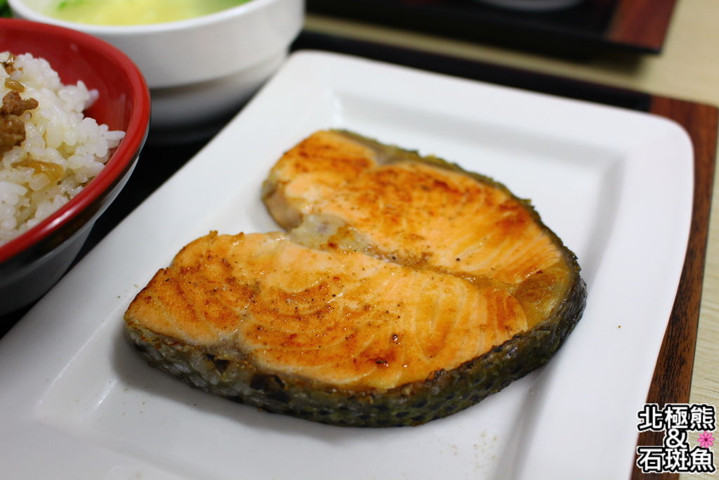不但有大塊鮭魚,還是肉臊飯附兩菜一湯