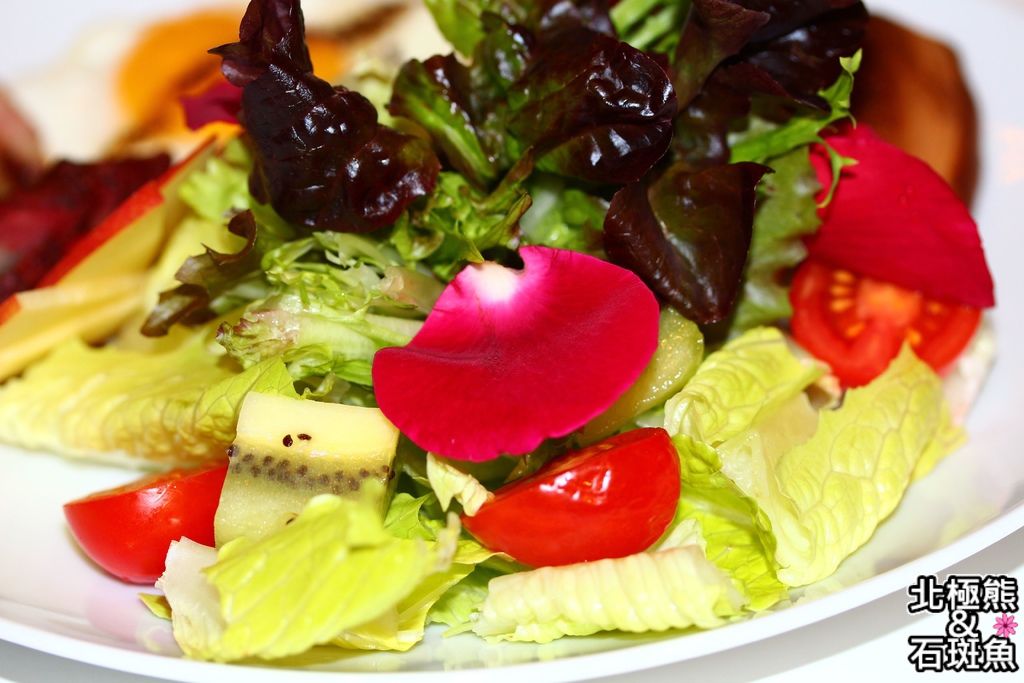 生菜水果撒上幾片可食用的玫瑰花瓣,美的不要不要的