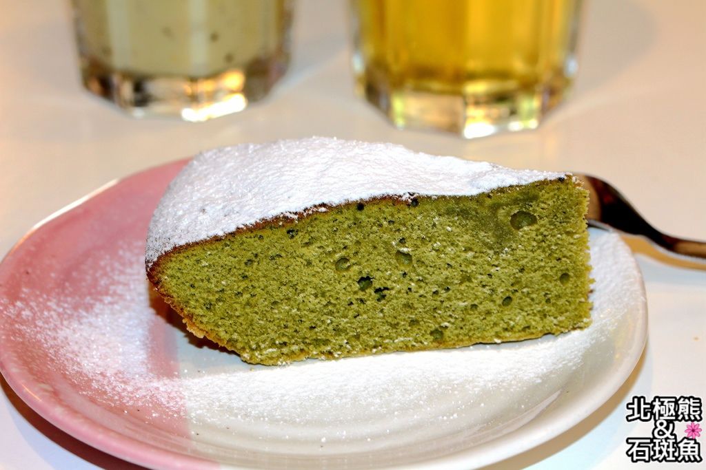 最後壓軸的甜點是那瑪夏金萱蛋糕,看似抹茶,但不是抹茶