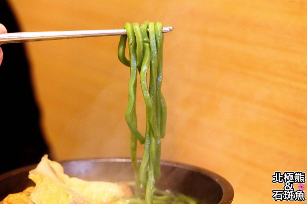 綠藻烏龍麵煮熟後仍保持一定的Q彈度跟嚼勁