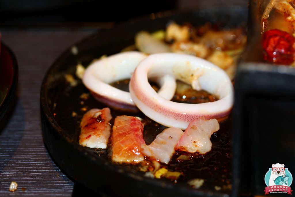 布滿油花的肉片和新鮮海味可以徜徉在湯鍋中,也可以在鐵板上滋滋作響