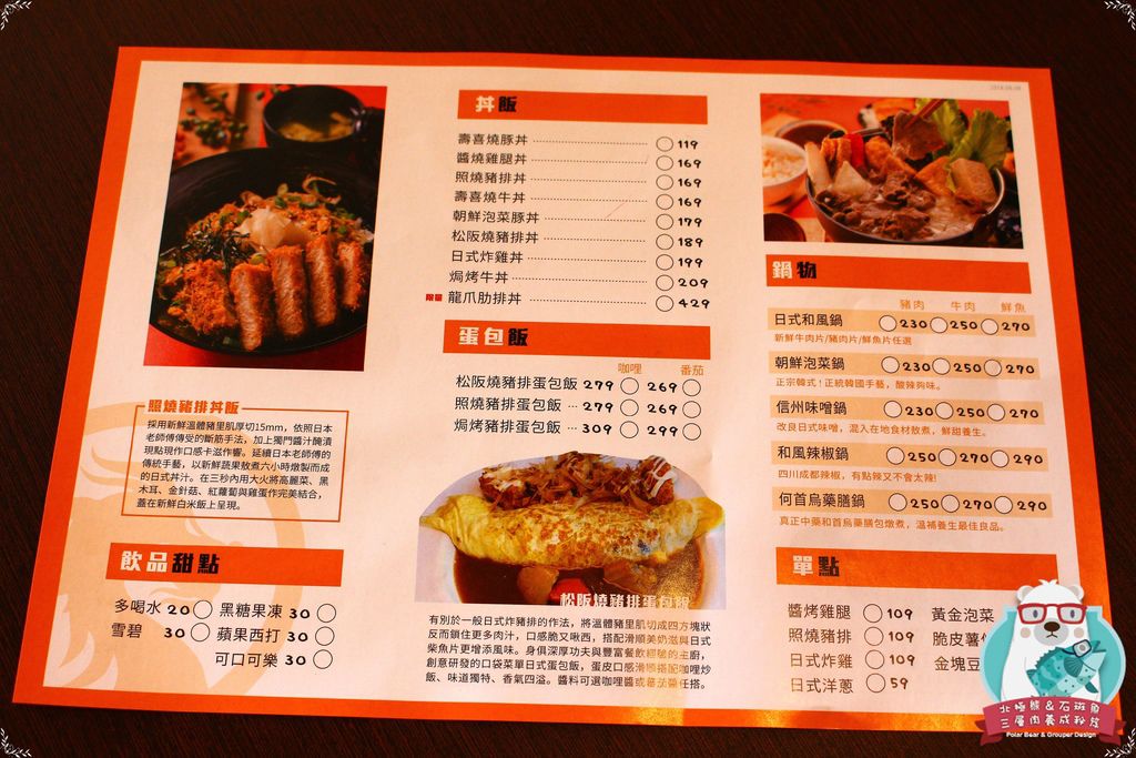 店裏頭的菜單給大家參考